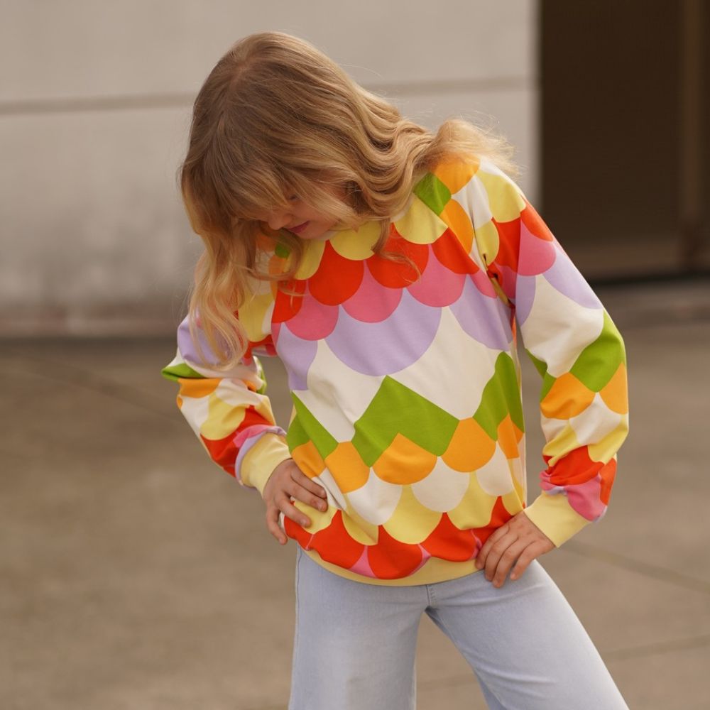 Der lässige Sweater Mini Basic Neira ist oversize geschnitten und wird im Gegensatz zum „Sweater Neira“ ohne Teilung genäht. Er eignet sich hervorragend als kuscheliger Begleiter für die kühleren Stunden. Die Ärmel sowie der Bund können wahlweise mit Gummizug im Saum oder mit Bündchen aus Bündchenware genäht werden.