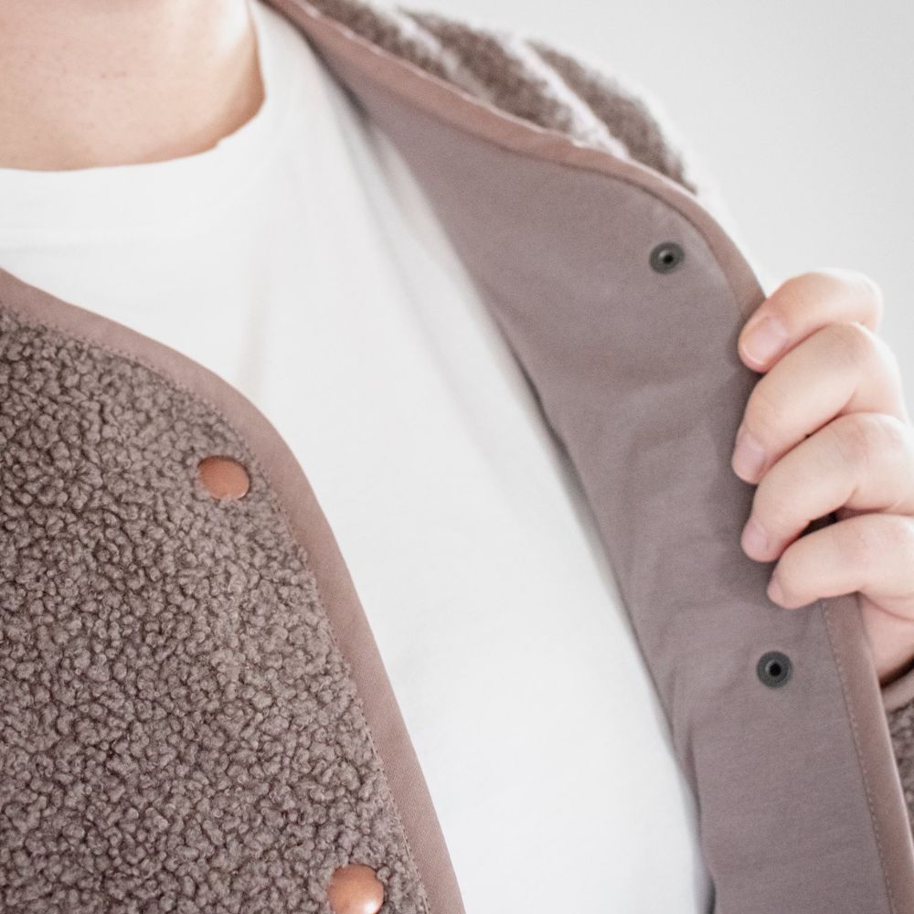Als Außenstoff eignen sich Steppstoffe, Cord, Bouclé, Sweat, Teddy-, Wollwalk-, oder Mantelstoffe. Als Futterstoffe eignen sich Baumwollpopeline, French Terry, Jersey oder Sommersweat.