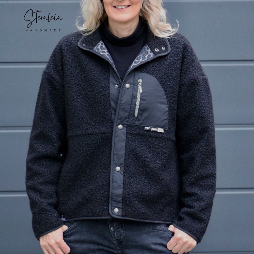 Ein äußerst vielseitiges und tolles Schnittmuster mit ausführlicher Anleitung. Es macht richtig Spaß, die Jacke zu nähen, man kann Materialien mixen oder Stoffreste verwerten. Ich bin richtig begeistert. Ebenfalls toll finde ich,dass man sich einen tollen Partnerlook nähen kann.